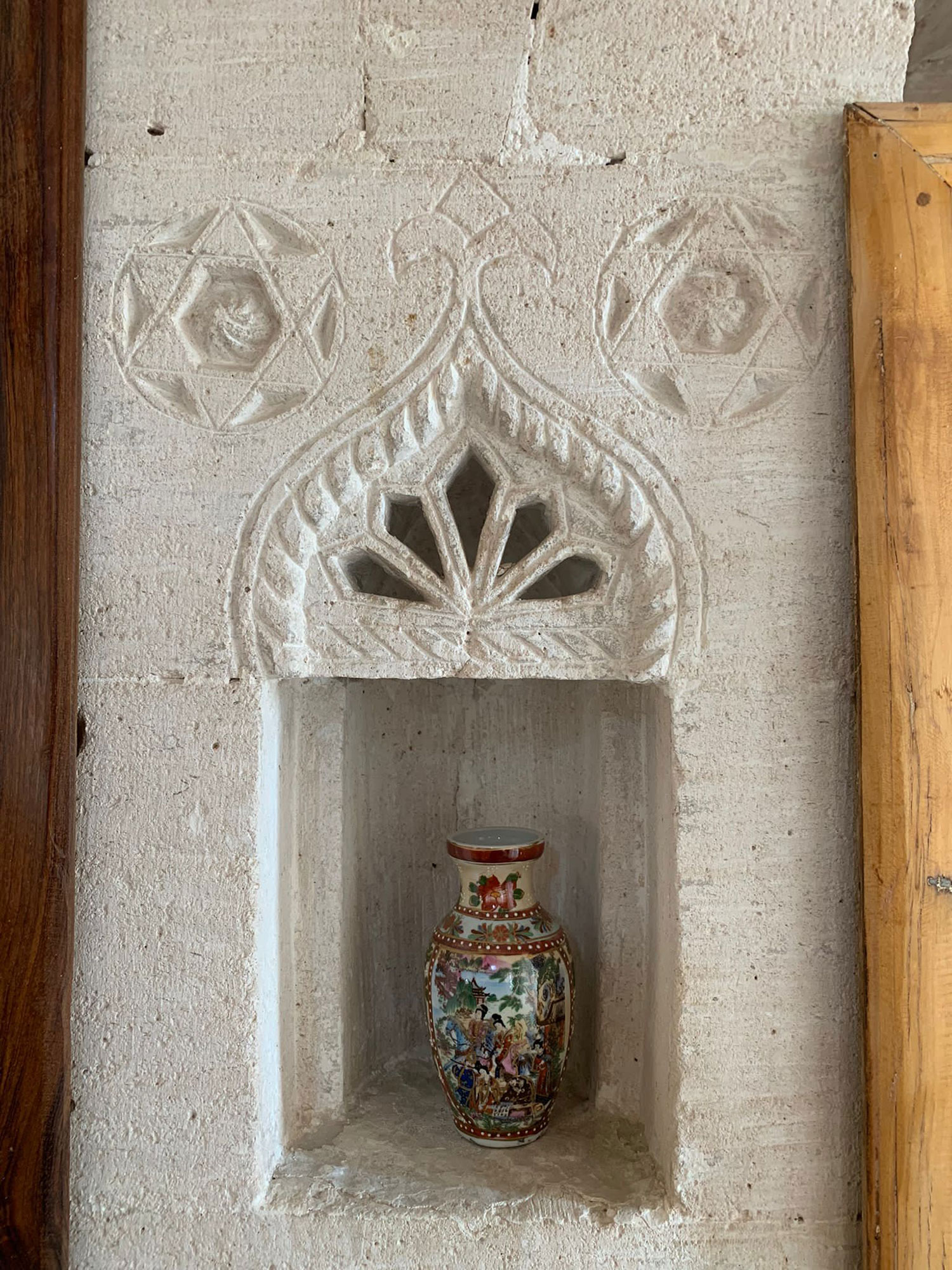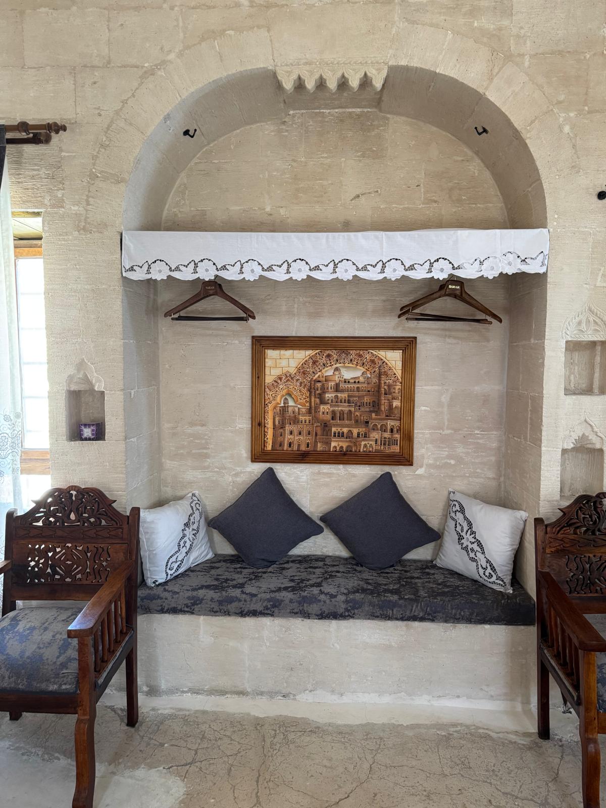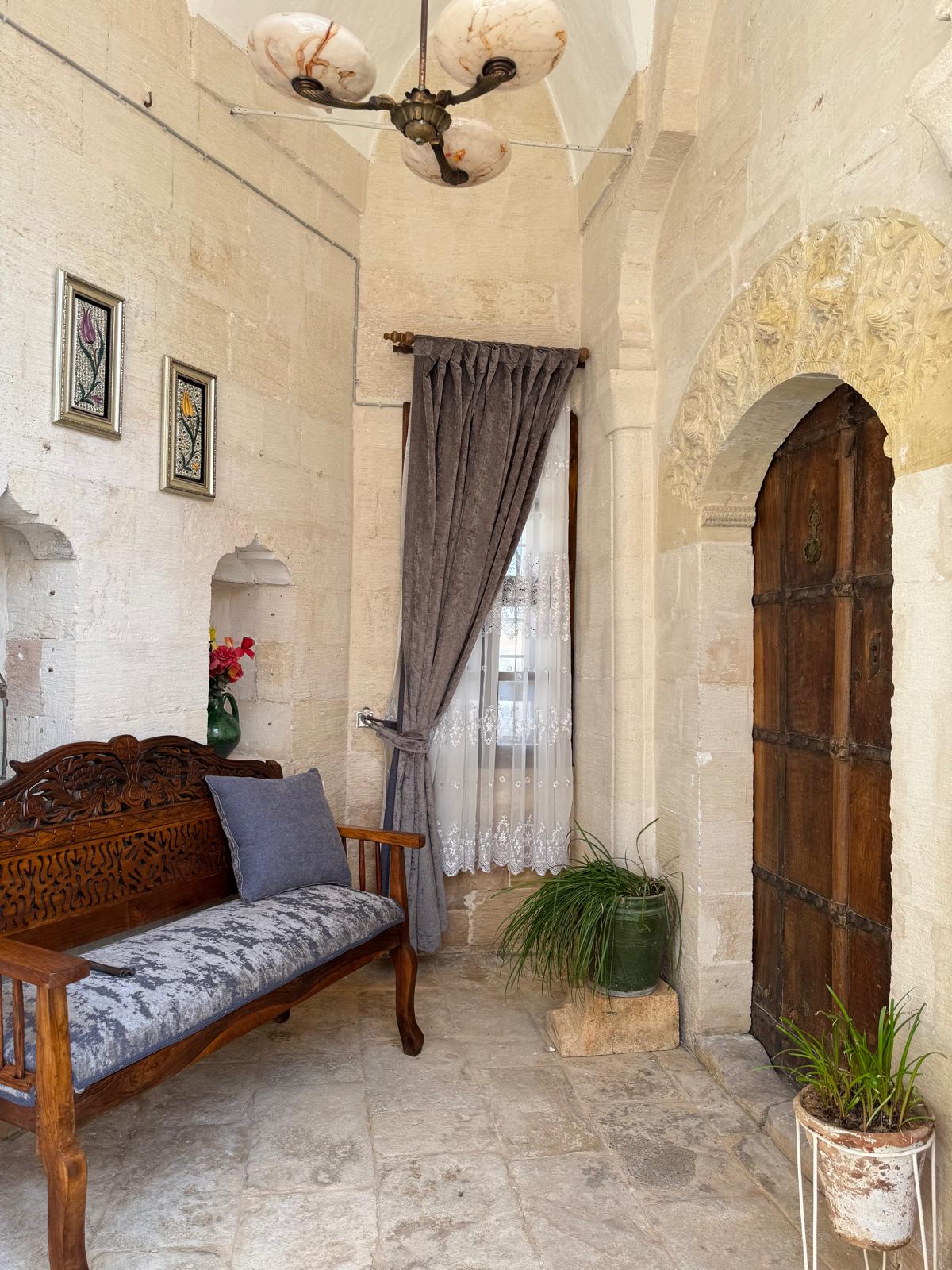 Odanın tabanı hâlâ ilk yapıldığı dönemdeki orijinal taş zemindir. Her adım, bir asırlık hikâyenin izlerini taşır. Odanın tüm döşemesi ise Sarev Sarar firması tarafından en kaliteli kumaşlarla hazırlanmış, taşın sadeliği ile kumaşın zarafeti bir araya getirilmiştir.